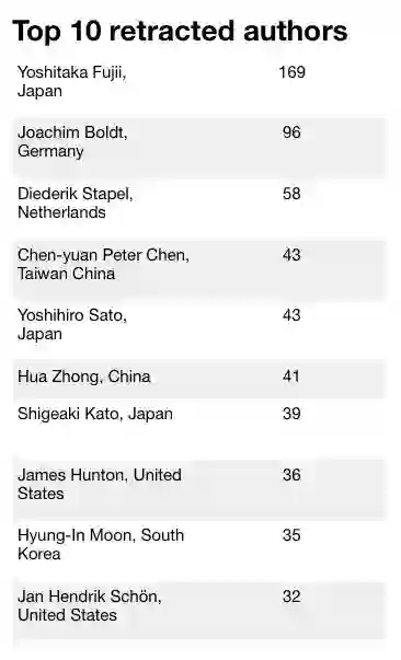 两个星期前,Science联合撤稿观察发布了一个“撤稿”报告,许多数字令人震惊:过去10年里学术期刊撤回的论文数量增加了10倍,撤稿率最高的国家中国排第7,撤稿最多的10位作者中,中国占了两人。
