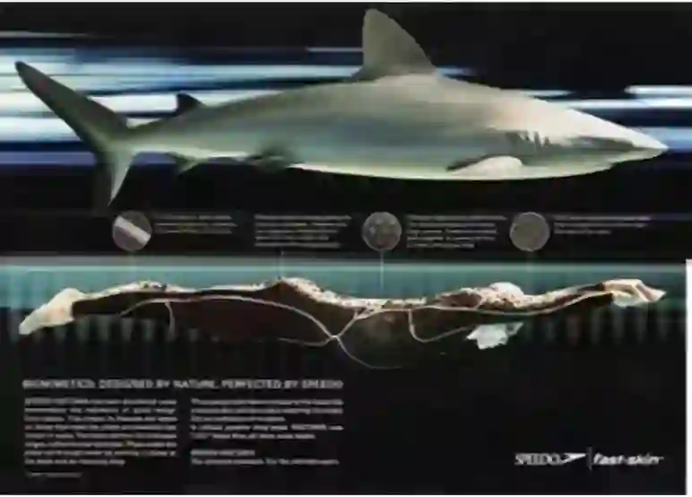 不过,制作这些泳衣并不需要去“弑鲨取皮”,而是通过“仿生”来实现减阻效果。其核心技术在于使用超伸展的聚合物纤维材料来仿造鲨鱼的皮肤,从而降低摩擦系数。