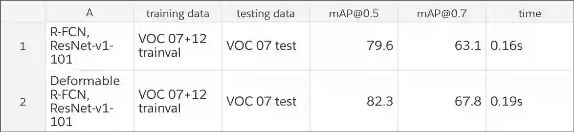 目前其仅包含使用 R-FCN 的可变形卷积网络。使用 DeepLab 的可变形卷积网络将在不久之后发布。