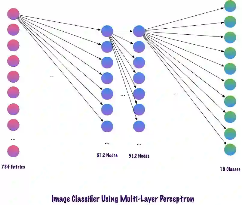 因为输入图像的大小为28x28=784(MNIST数据集),MLP的输入层神经元总数将为784。网络预测给定输入图像中的数字,输出数字范围是0-9。在输出层,一般返回的是类别分数,比如说给定输入是数字“3”的图像,那么在输出层中,相应的神经元“3”与其它神经元相比具有更高的类别分数。这里又会出现一个问题,模型需要包含多少个隐藏层,每层应该包含多少神经元?这些都是需要人为设置的,下面是一个构建MLP模型的例子: