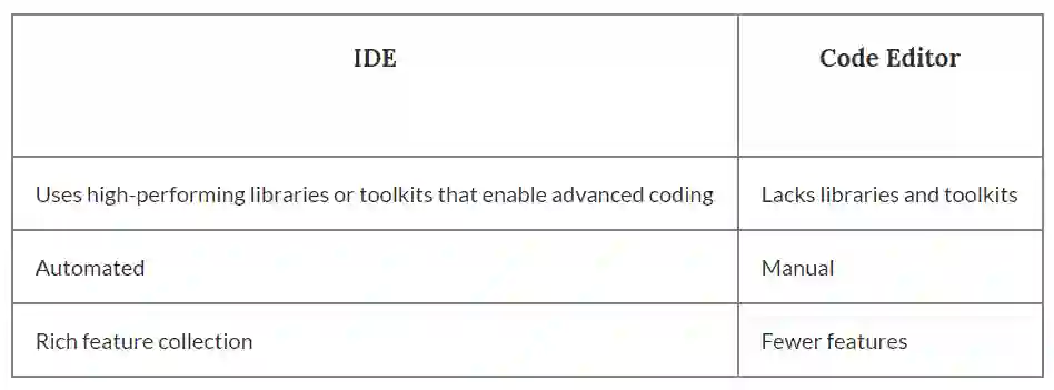有一个与 IDE 相似的术语——代码编辑器(code editor)。我们先来探讨二者的异同。