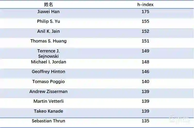 h-index 排在前十二的相关学者位列如下: