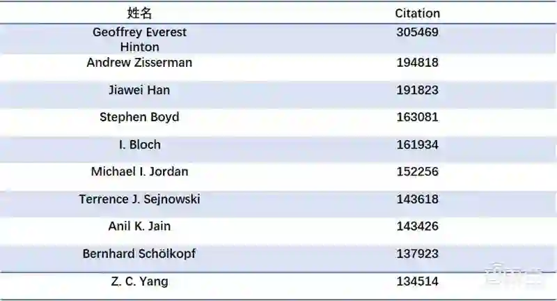 Citation 排在前十的相关学者位列如下: