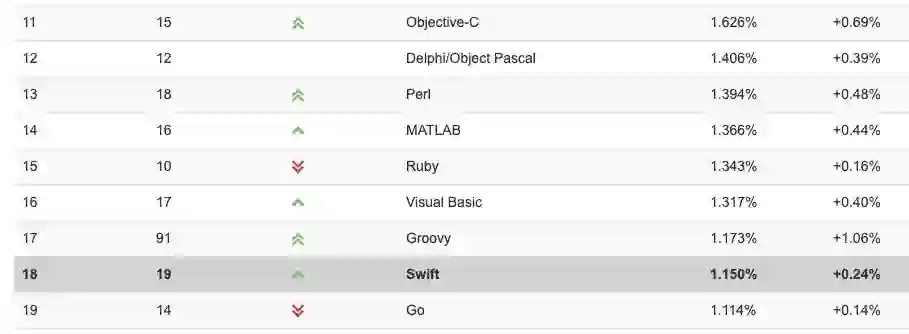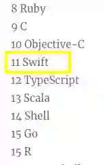 Swift是苹果最新的开发语言,有人呼吁谷歌取代TensorFlow的Python。目前在TOIBE排名18位: