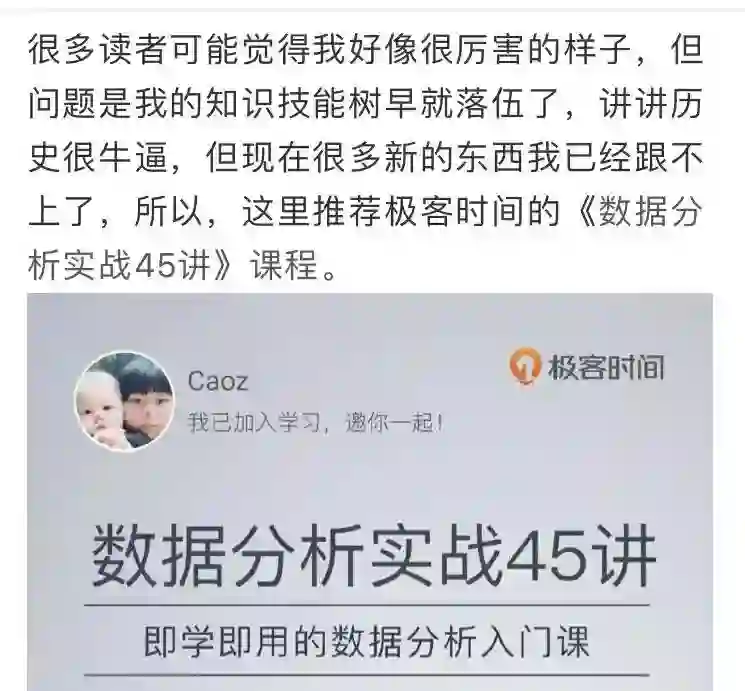 现在要插播一下,InfoQ 今天的专属粉丝福利:《数据分析实战 45 讲》限时优惠,参团只要 79 元,原价 99 元,便宜 20 元,但仅限今天 24 小时。想扩大自己能力边界的同学们,请抓紧搭上这个快车。