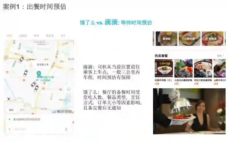 第一个是出餐时间的预估,我在这里用滴滴做比较,什么是等待时间预估。