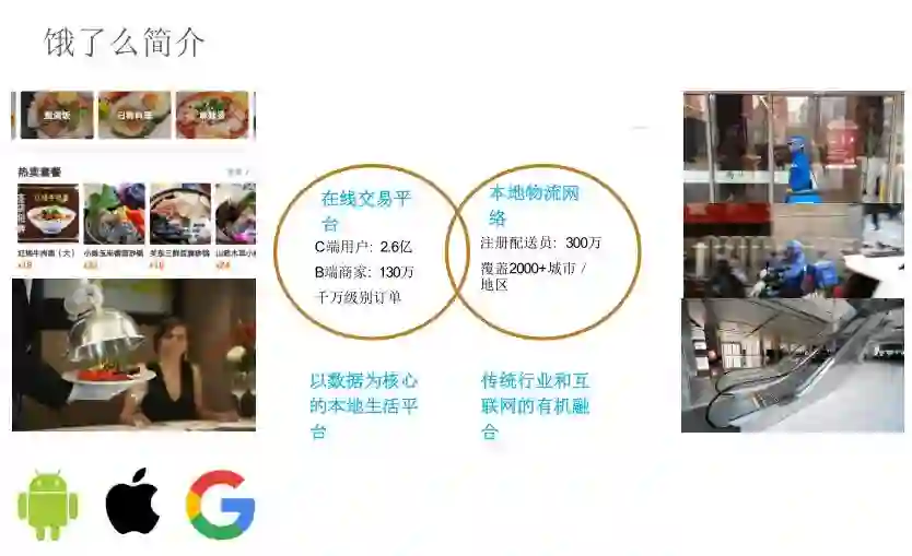 大部分人都点过外卖,现在外卖成了中国人吃饭的另一种方式,今天分享的主题是人工智能在 “饿了么” 的应用实践。