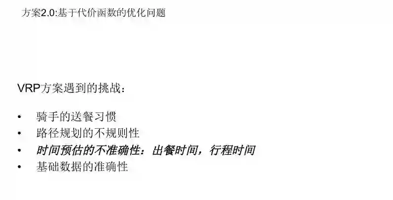 但是最后结果不是特别好,因为时间预估存在不准备性,在路径规划的时候,先走 A 单还是 B 单,在时间一旦出现误差的情况下,这个路径规划会非常差。