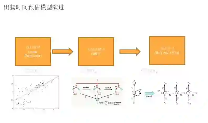 一开始效果不是特别好,但逐渐演进到后面的 GBDT ,在场景下做到平均不是特殊平均,加上出餐时间是 10 分钟,我们可以固定 7 分钟到 13 分钟,这个准确率比较高。