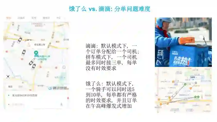 第二点我讲到算法的提升和对人的行为的理解比较重要,因为在外卖行业都需要人去执行,以前人工分配通过打电话,有大量沟通在里面。