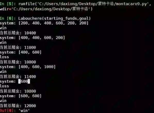 总结,今天我用蒙特卡洛模拟了历史上常见几种赌博模型,由于专业性较强,赌博模型只是简单介绍,以后有机会可详细阐述。