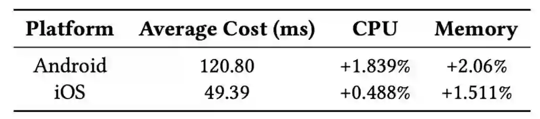 在线实验在快手 App 的线上环境进行,用到的模型大小在 6MB 以内,完全部署在客户端。