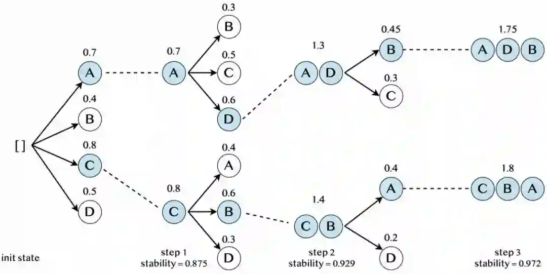 图 4. beam search 稳定性及 adaptive beam search 示例
