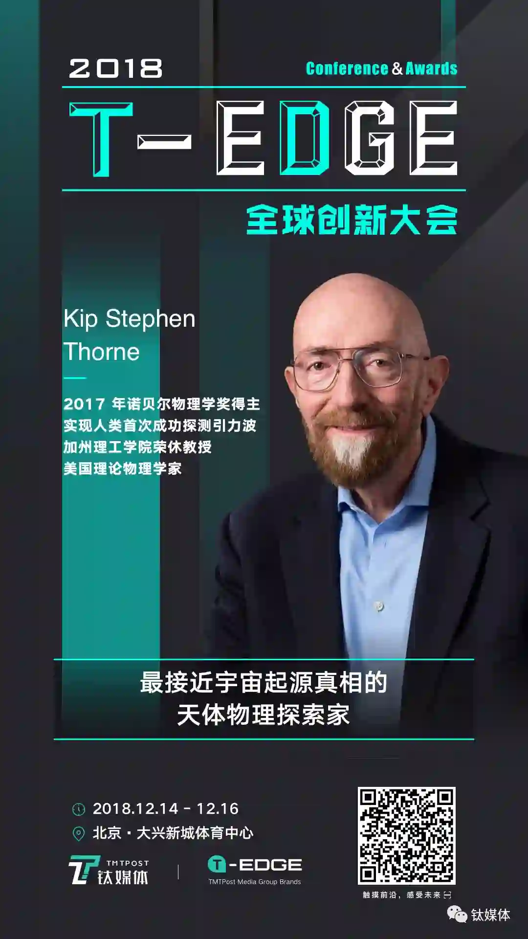12月15日,我们邀请了2017 年诺贝尔物理学奖得主 Kip Stephen Thorne、阿里巴巴集团技术委员会主席王坚、小鹏汽车董事长何小鹏来到钛媒体2018 T-EDGE 全球创新大会新技术峰会,分享他们对于技术原力和人类想象的思考和探索。