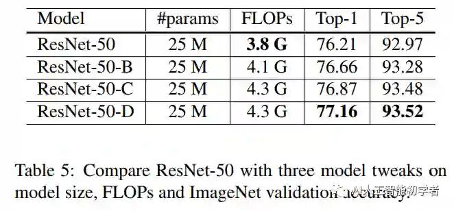 回顾了ResNet的两个比较流行的改进,分别称之为ResNet-B和ResNet-C。在此基础上,提出了一种新的模型调整方法ResNet-D。