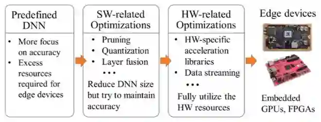 图 2: 被广泛采用的自顶向下 DNN 设计流程,可通过网络压缩及软硬件层面优化,把 DNN 部署至资源受限的终端设备