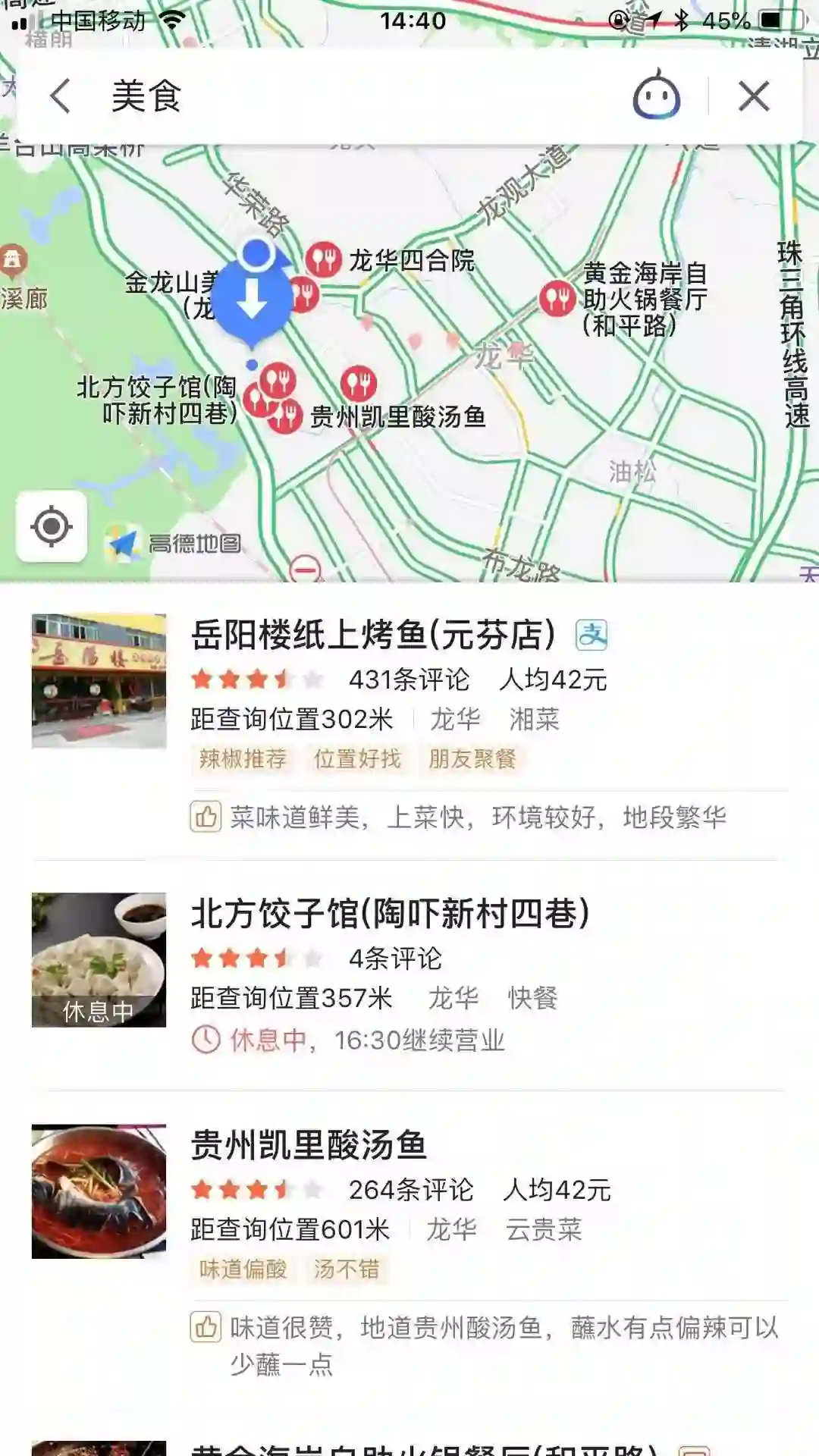 点击美食,就会跳转到附近美食排行榜等,和大众点评等本地服务类软件高效的结合到了一起。