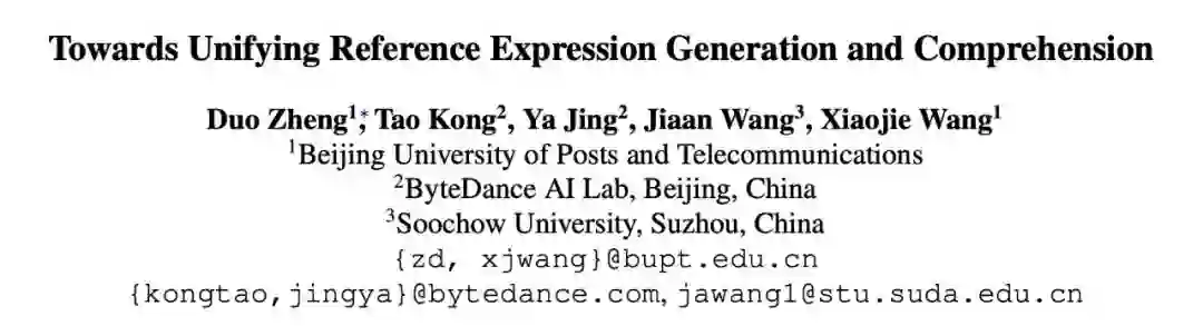 指代性表达(Reference Expression,RE)是描述真实场景中一个明确的对象,是人类社会中一种重要的认知行为。人们在日常生活中为一个对象构想一个 RE,并根据一个 RE 来识别一个所指对象,它们分别被命名为指代性表达生成和理解。由于其广阔的研究前景和实际应用,这两项任务引起了自然语言处理、计算机视觉和人机交互领域的广泛兴趣。