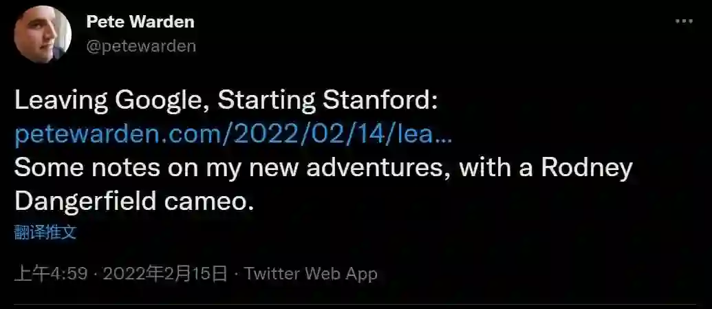 这位 Pete Warden,刚刚从谷歌辞职开始读博。