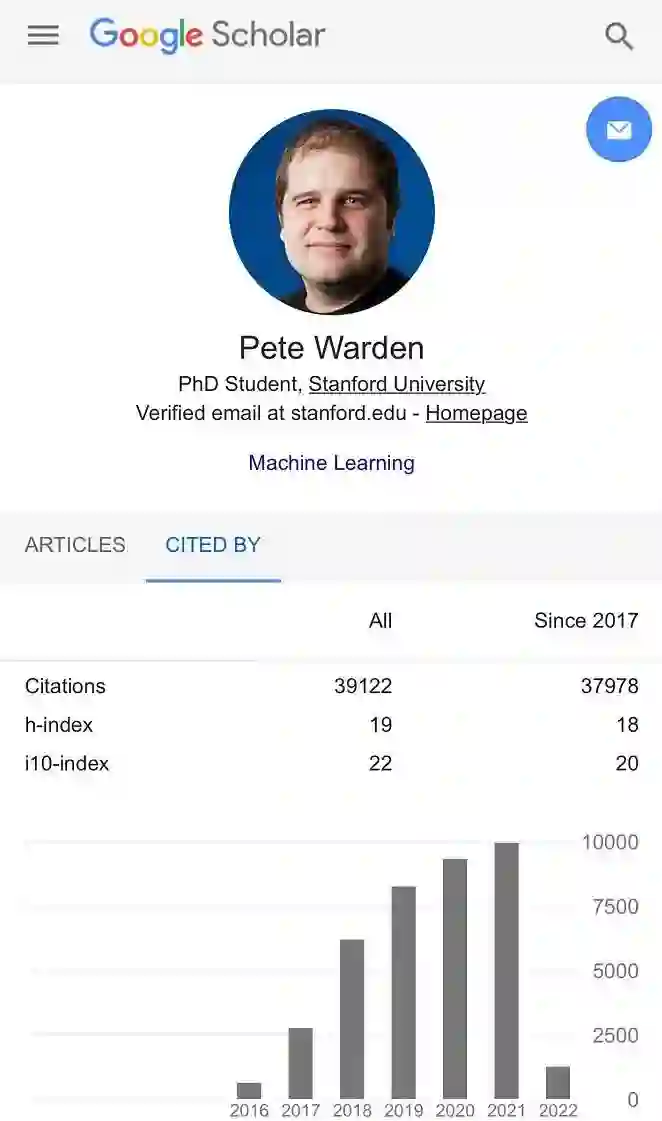 Pete Warden 是 TensorFlow 团队的创始成员之一,有关 TensorFlow 的重要论文里都有他的名字,他也经常会在 TensorFlow 开发者大会上发表演讲。