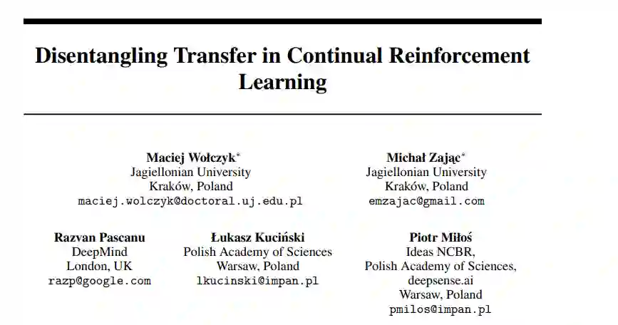 持续学习系统从以前看到的任务中迁移知识,以最大限度地提高新任务的性能的能力,是该领域的一个重大挑战,限制了持续学习解决方案对现实场景的适用性。因此,本研究旨在拓展我们对持续强化学习中迁移及其驱动力的理解。我们采用SAC作为底层RL算法,连续世界作为一组连续控制任务。我们系统地研究了SAC的不同组成部分(参与者和批评者、探索和数据)如何影响传输效果,并提供了关于各种建模选项的建议。最好的一组选择被称为ClonEx-SAC,是根据最近的Continual World基准进行评估的。ClonEx-SAC的最终成功率为87%,而PackNet的成功率为80%,是基准测试中最好的方法。此外,根据Continual World提供的度量,转移从0.18增长到0.54。