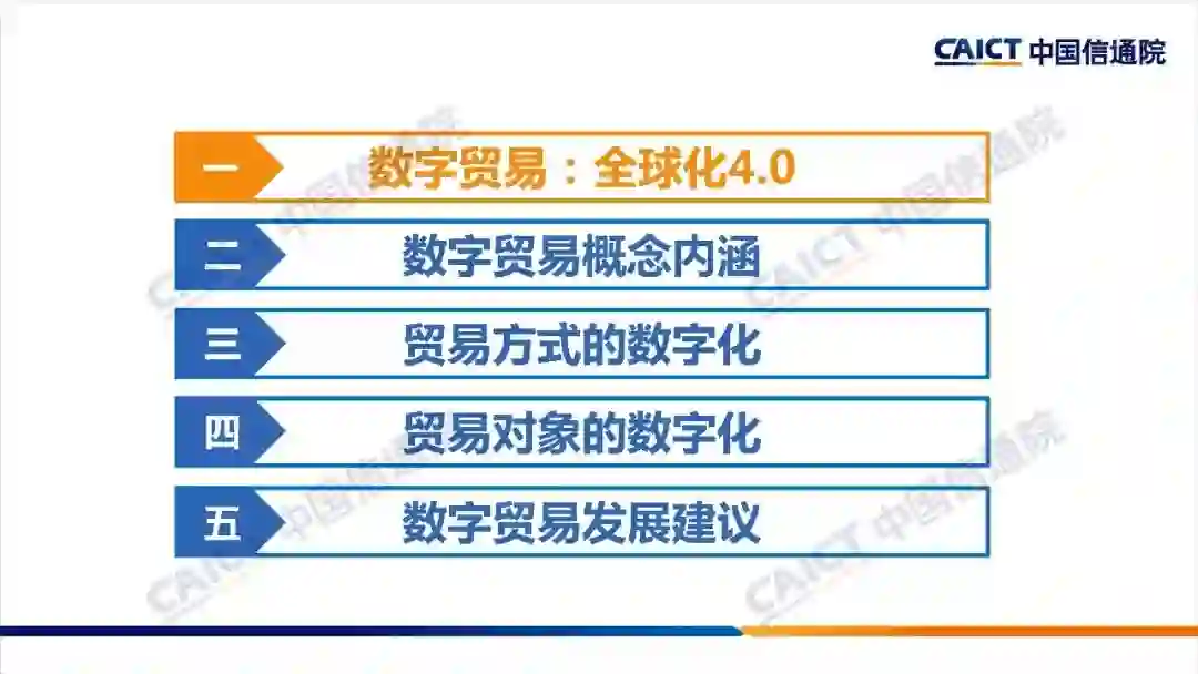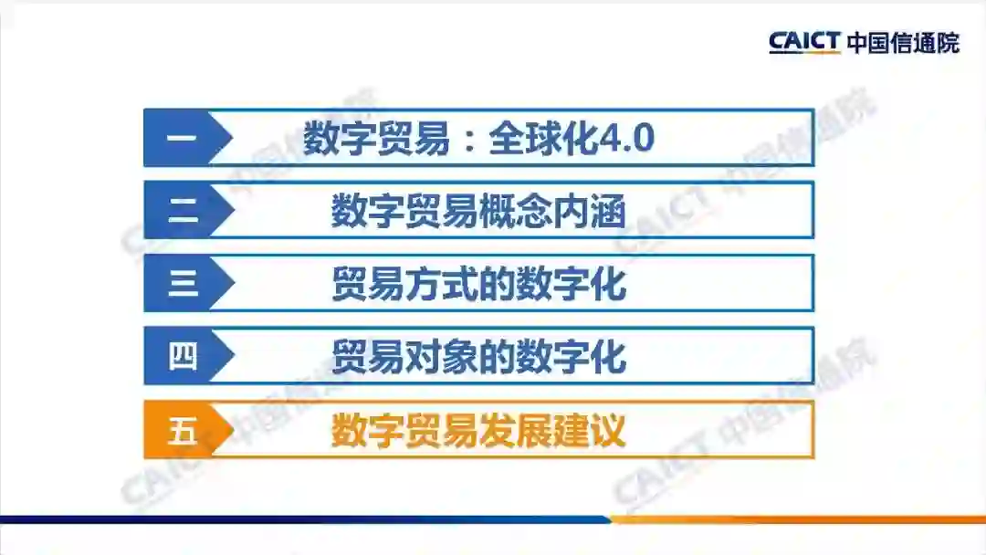 五是新治理。由于数字贸易的发展,新的国际分工和分配模式出现,对全球经济带来非平衡性影响。需要围绕数字贸易打造全新的跨境治理体系,使得发展中国家也有参与国际分工和进一步发展的机会