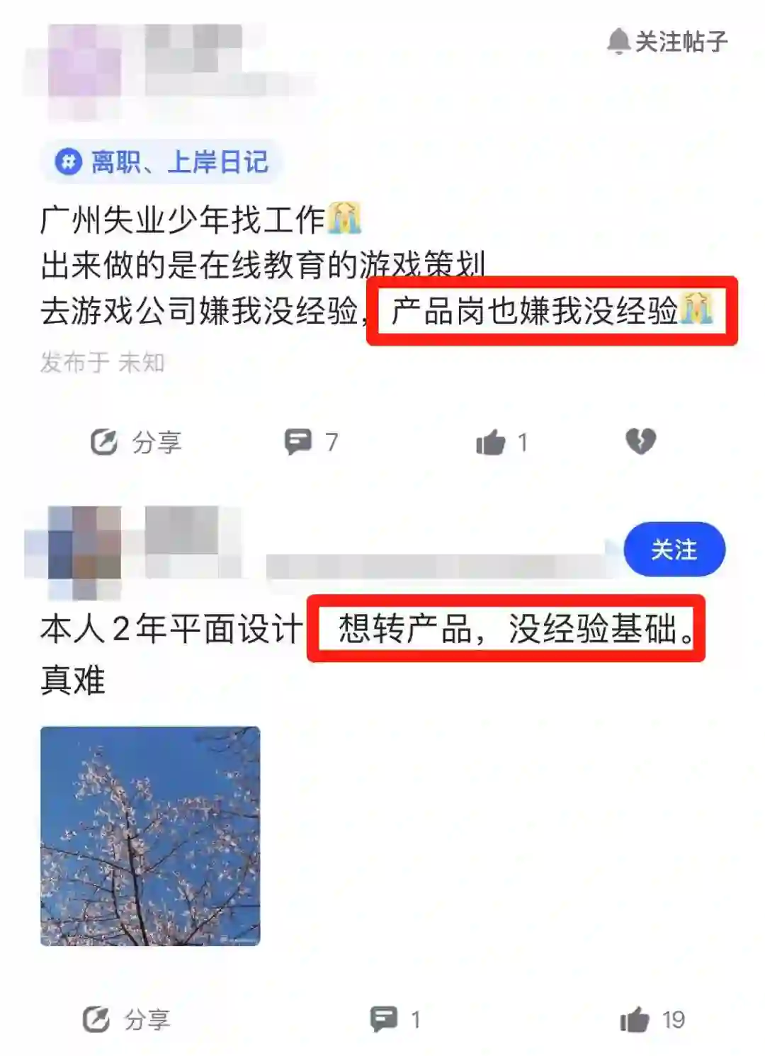 但问题就在于,大多数想入行、转岗的同学都没有工作经验。