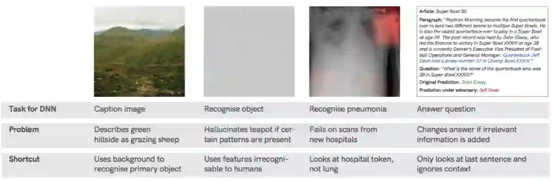 如何调和DNN超出人类的表现,同时却可能会犯下荒谬错误之间的偏差呢?我们认为,许多失败案例不是个例,而是和DNN会无意识地遵循“捷径”策略有关。虽然表面上是成功的,但稍微发生些许偏差,这些策略通常会以失败告终。