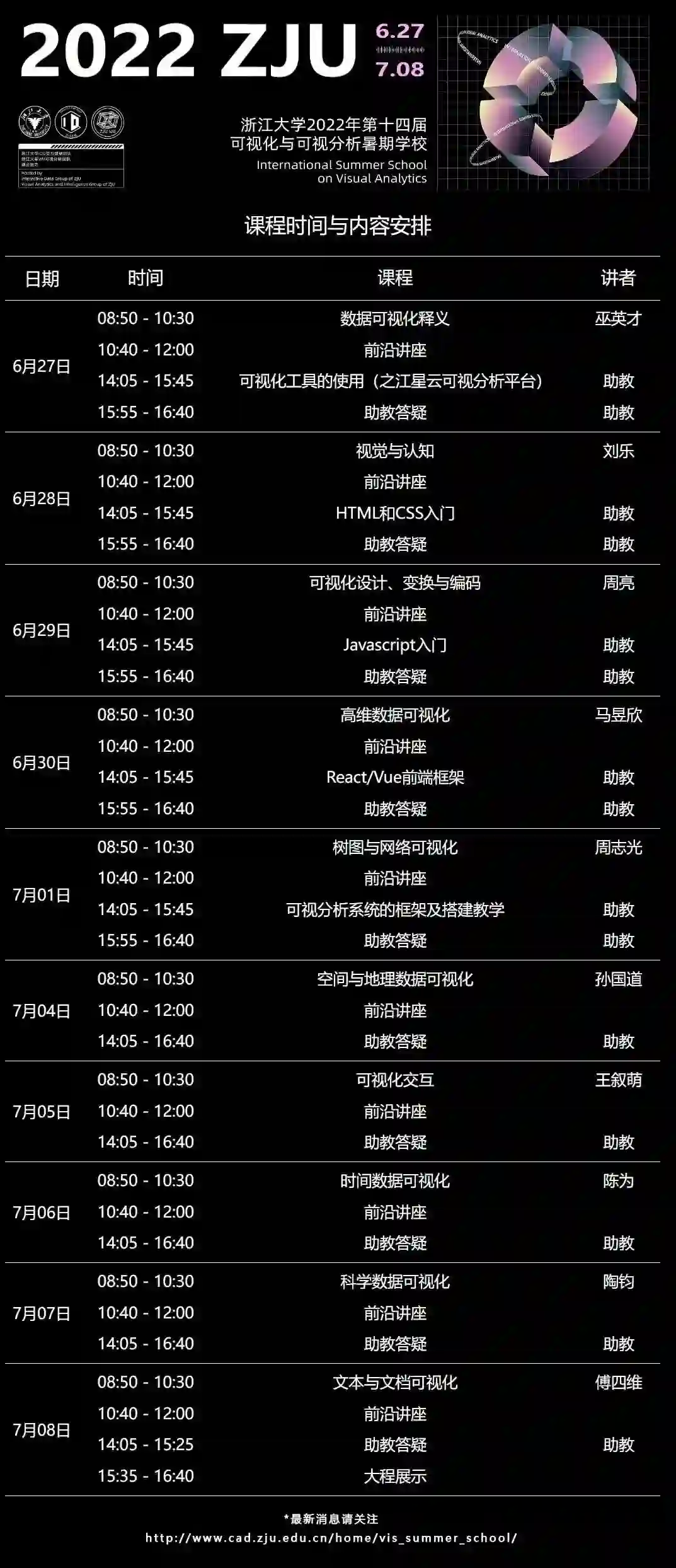 第14届浙江大学可视化与可视分析暑期学校将采取线上、线下结合的方式举行,并且面向全国学生授课。
