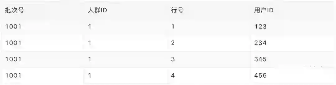 分页查询性能优化方案: 在分页时,当人群的规模很大(千万级别)时,页码越往后,查询的性能会有明显下降。因此,我们采用把人群数据增加行号、导出到 MySQL 的方式,来提升性能。表结构如下: