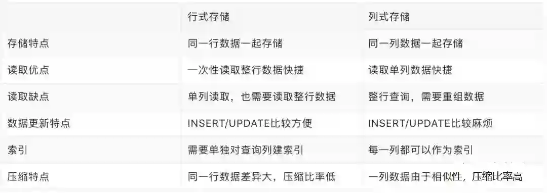 下面简单对比一下行式存储与列式存储的特点:
