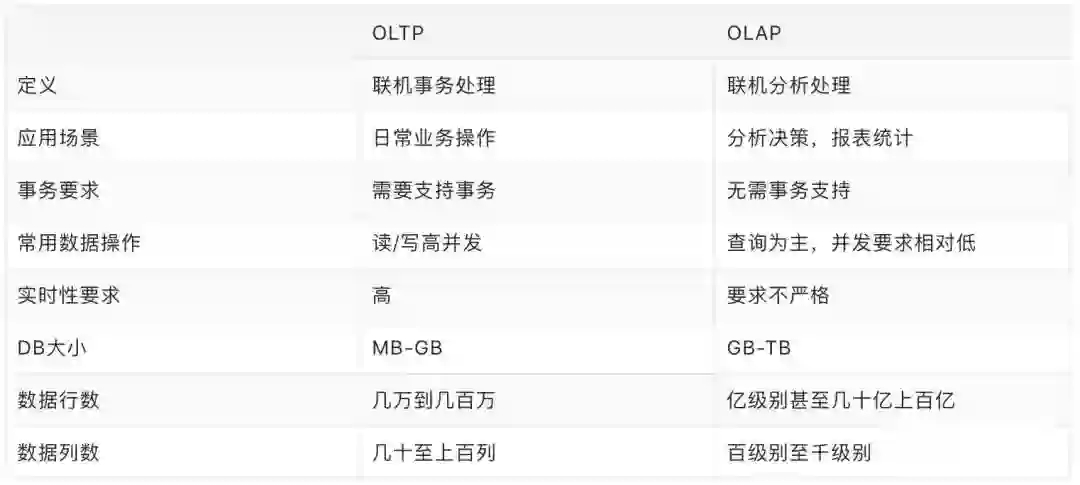 下面简单对比下 OLTP 和 OLAP: