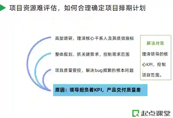 项目资源评估与项目排期是系统性工程,与关键干系人KPI、需求范围、产品解决方案、系统研发过程的质量管控息息相关。