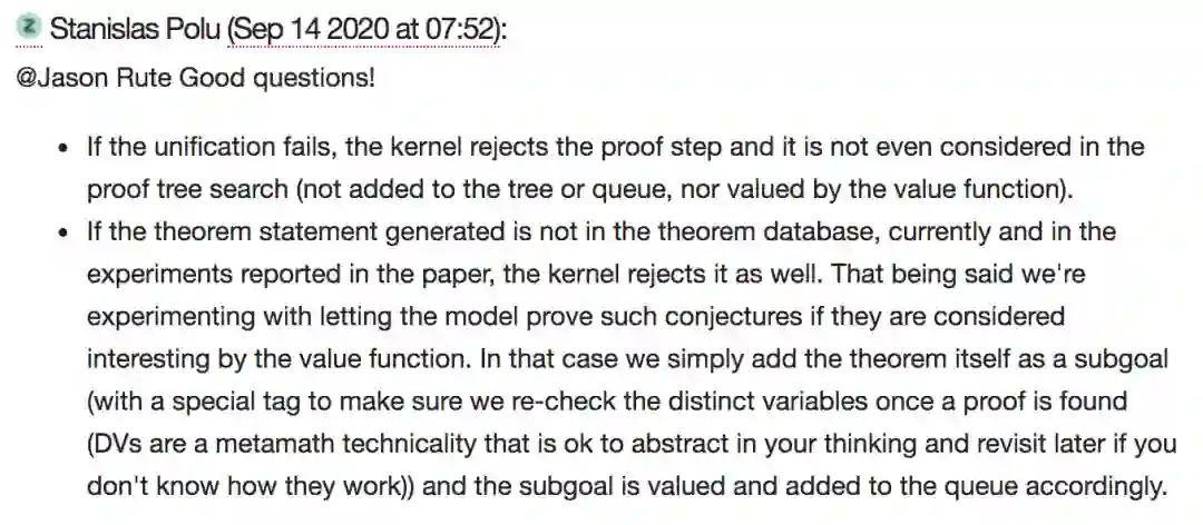 论文一作 Stanislas Polu 也在论坛对此进行了回复,并表示这是个好问题。