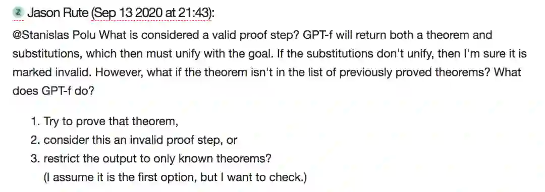 比如网友@Jason Rute 就问到:什么才是有效的证明步骤?Jason Rute 曾经是一名数学家,后来成为了数据科学家,他对深度学习很感兴趣。