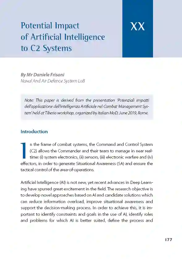 人工智能(AI)并不是什么新事物,但最近深度学习(Deep Learning)方面的进展已经引发了该领域的极大兴奋。研究目标是开发基于人工智能和候选解决方案的新方法,以减少信息过载,提高态势感知和支持决策过程。为了实现这一目标,重要的是在使用人工智能识别约束和目标,确定角色和人工智能更适合的问题,定义流程和开发实验所需的工具,为绩效评价定义度量,和描述适用的验证和确认过程。