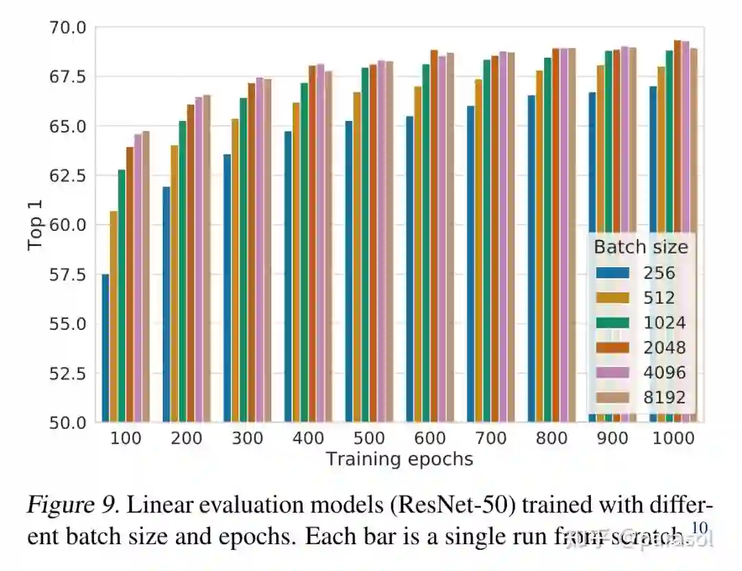 ● 实验证明对比学习可以从更大的 batch size 和更长的训练时间上受益