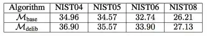 表 2:汉语→英语翻译的 BLEU 分值