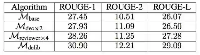 我们进一步验证了推敲网络在文本摘要上的有效性,这是编码器-解码器框架得到了成功应用的另一种真实应用 [19]。