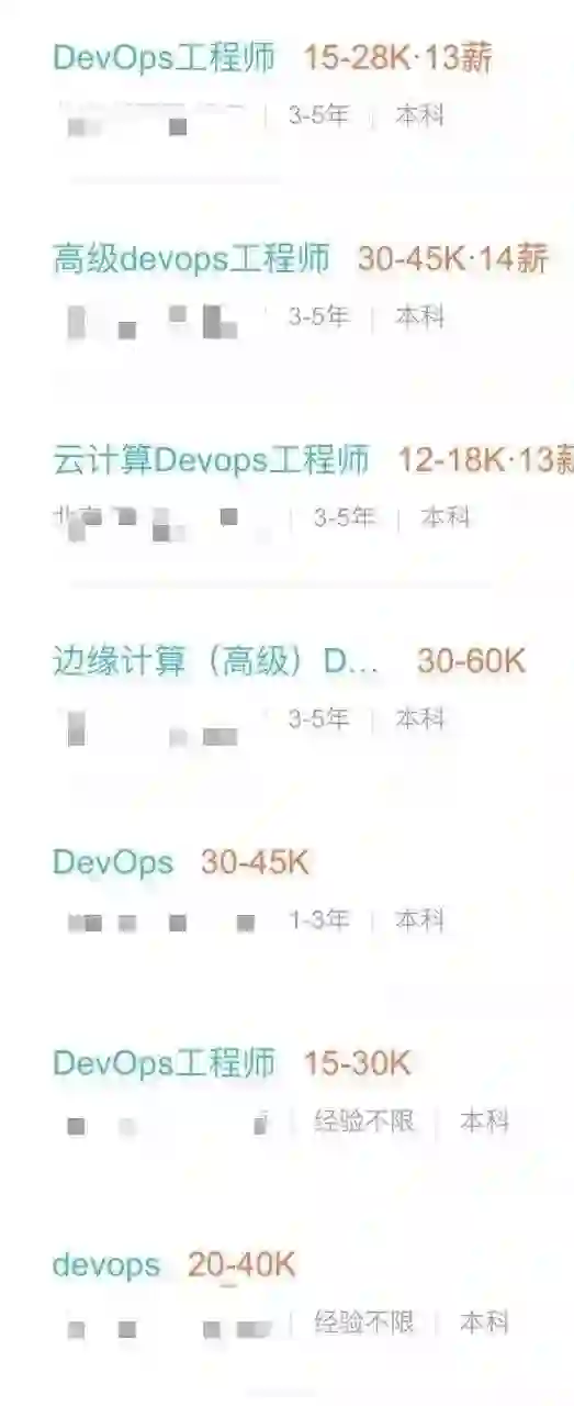 至于 DevOps,虽然国内可搜寻到的岗位不少,但薪资并没有太高,基本与 Go 语言的区间水平相当,要求具备 3 到 5 年工作经验的依旧是最普遍的。