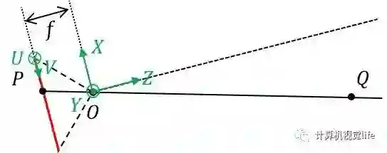 上,但无法确定具体的点,所以我们讲,针孔相机模型是一个射线方程模型,