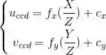 。在OpenCV及Matlab标定工具箱直接使用了(3)关联,不需要知道CCD单个像素的尺寸,因此在标定过程是得不到物理焦距