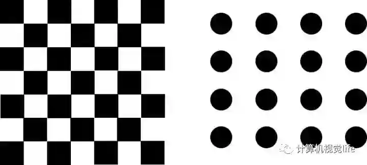 但是圆点格的检测似乎是Halcon的专利(存疑),因此OpenCV和Matlab标定工具箱用的是棋盘格,要用圆点格得要自己写算法。下文中提到的标定板说的都是棋盘格。标定板的第二大作用是把标定板中的角点变换到相机坐标系下的坐标
