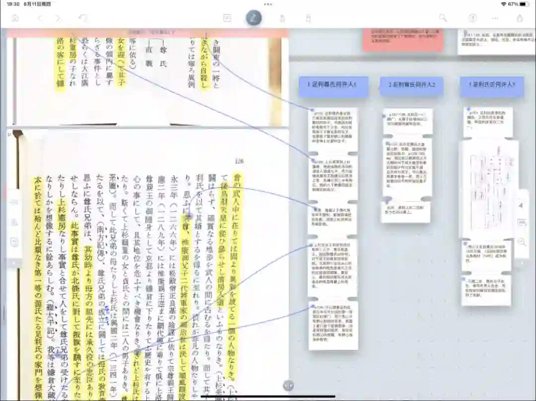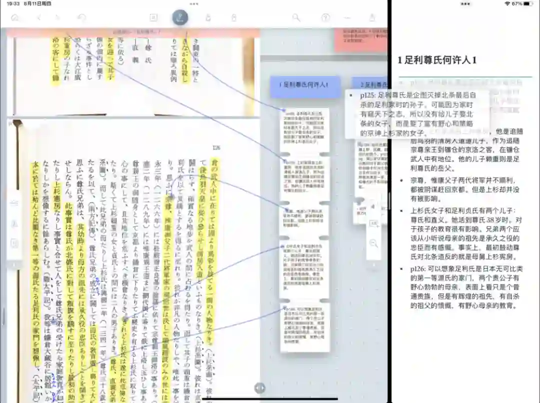 譬如今年上半年,我修了一门精读某日文书籍的课,每周读几十页然后讨论这种。根据这门课的性质,我对工具的要求是:能用中文笔记总结文章结构,避免课堂讨论中忘记读过的内容和位置;能跳转到原文,以便就原文参与讨论;能链接多处原文笔记,方便跳转和建立知识链接。从这个要求出发,