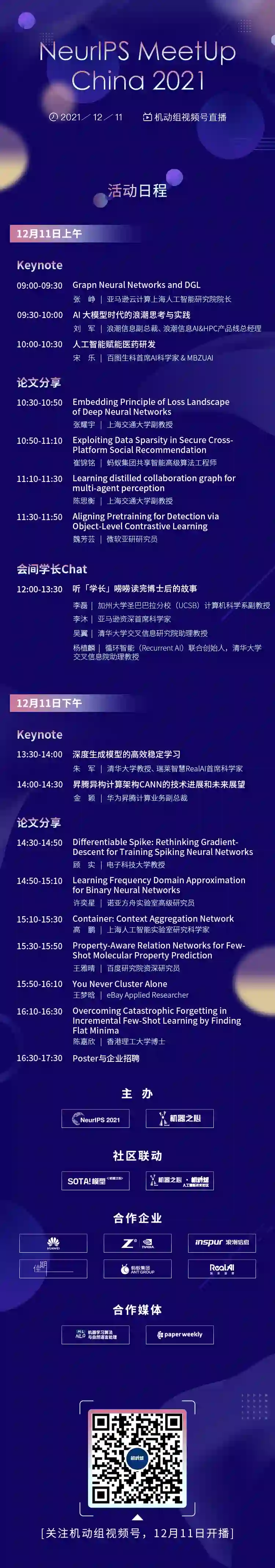 今日,包括论文分享、圆桌论坛在内的NeurIPS MeetUp China全日程正式揭晓,希望能让大家收获满满。