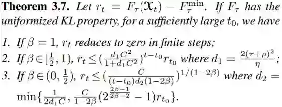 在平滑度(Theorem 3.5)和 Kurdyka-Lojasiewicz 条件(Theorem 3.7)下提供临界点的收敛保证。