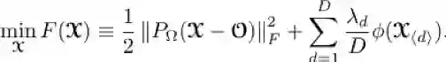 非凸正则化器已成功地应用于低阶矩阵学习。在这篇论文中,我们将此扩展到更具挑战性的低秩张量补全(Tensor completion)问题。在 Proximal Average 算法(Bauschke et al., 2008; Yu, 2013)的基础上,提出了一种有效的求解方法,避免了昂贵的张量折叠和展开。