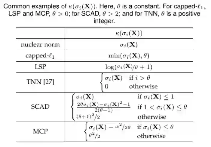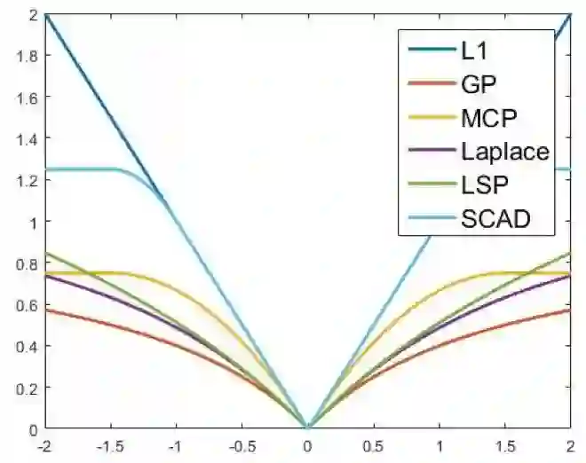 我们使用了三种非凸惩罚项:capped-l1,LSP 和 TNN。