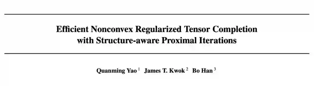 近日,来自第四范式的姚权铭与来自香港科技大学和"日本理化研究所"的研究者提出的“Efficient Nonconvex Regularized Tensor Completion with Structure-aware Proximal Iterations",入选了 ICML 2019 中选论文榜单。