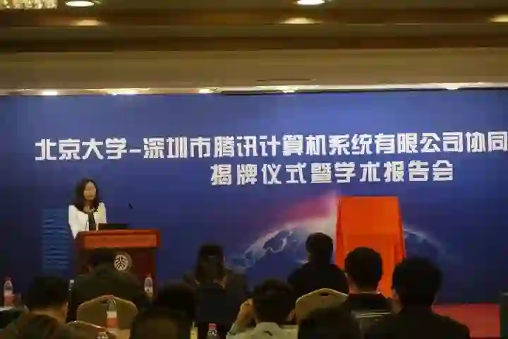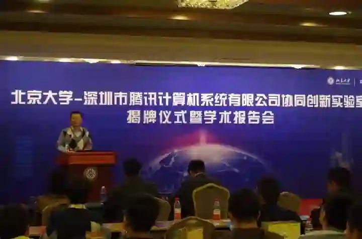 2017年10月17日,北京 -- 北京大学-深圳市腾讯计算机系统有限公司协同创新实验室正式揭牌。北京大学副校长中科院院士龚旗煌教授、腾讯公司副总裁王巨宏女士、腾讯公司数据平台部总经理蒋杰先生,北京大学科技开发部常务副部长姚卫浩,北京大学软件与微电子学院常务副院长吴中海教授、信息科学与技术学院副院长谢冰教授等来自北京大学各有关院系和腾讯公司的代表六十余人共同出席了揭牌仪式。基于双方共建的协同创新实验室,北京大学和腾讯公司将建立战略合作伙伴关系,共同建设集科研合作、人才培养、成果转化等为一体的产学协同创新平台。